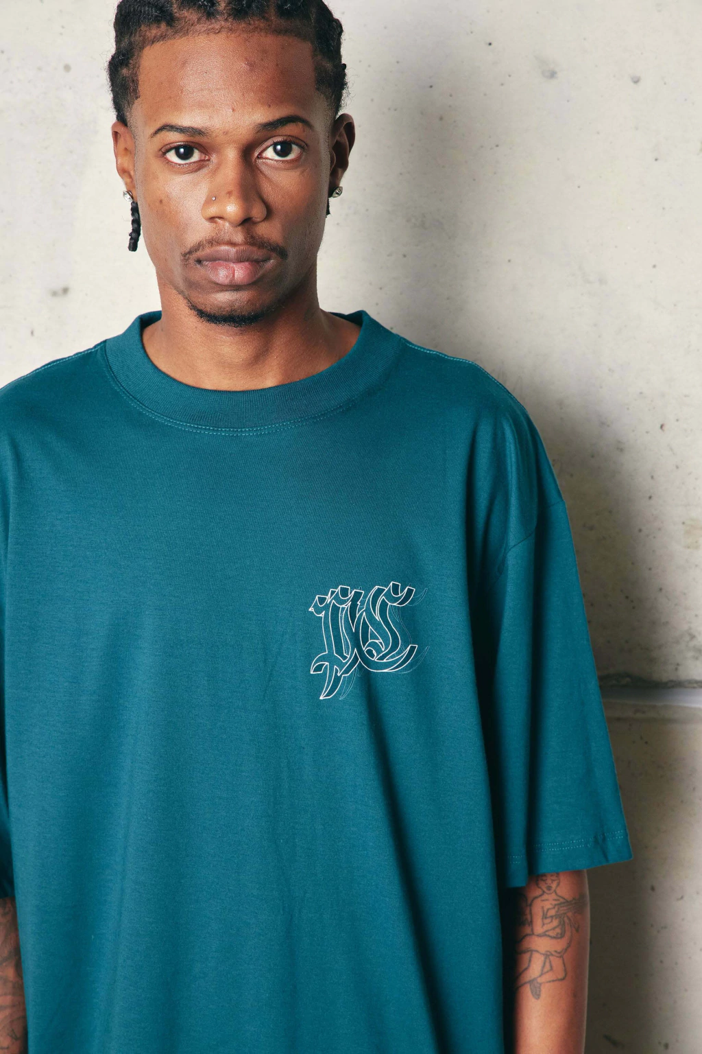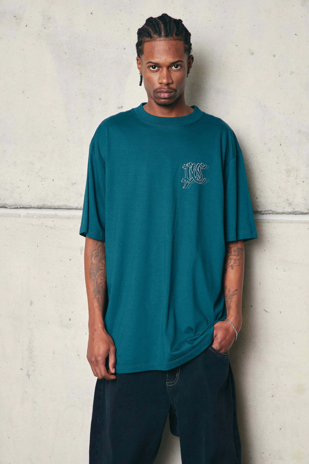 Camiseta com modelagem oversized, esta peça oferece um ajuste relaxado e confortável. O design mais largo proporciona um caimento solto e fluido, com destaque para a amplitude nos ombros e no tórax. A gola de 2cm em ribana canelada adiciona um toque de estilo.